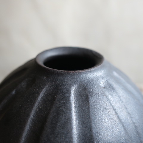 益子焼ならではの自然の温もりが感じられるぽってりとした陶器に、マットな質感の釉薬としのぎ(鎬)の模様。